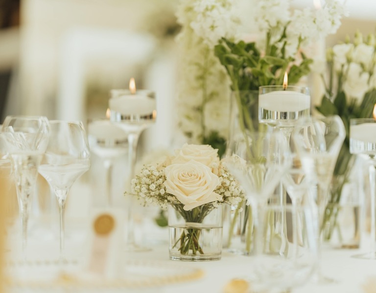 Their day was the perfect blend of timeless elegance and seasonal warmth — fresh whites and lush greens arranged to feel airy, romantic, and effortlessly luxurious and layers of beautiful candlelight adding to the atmosphere through the day and late into the evening